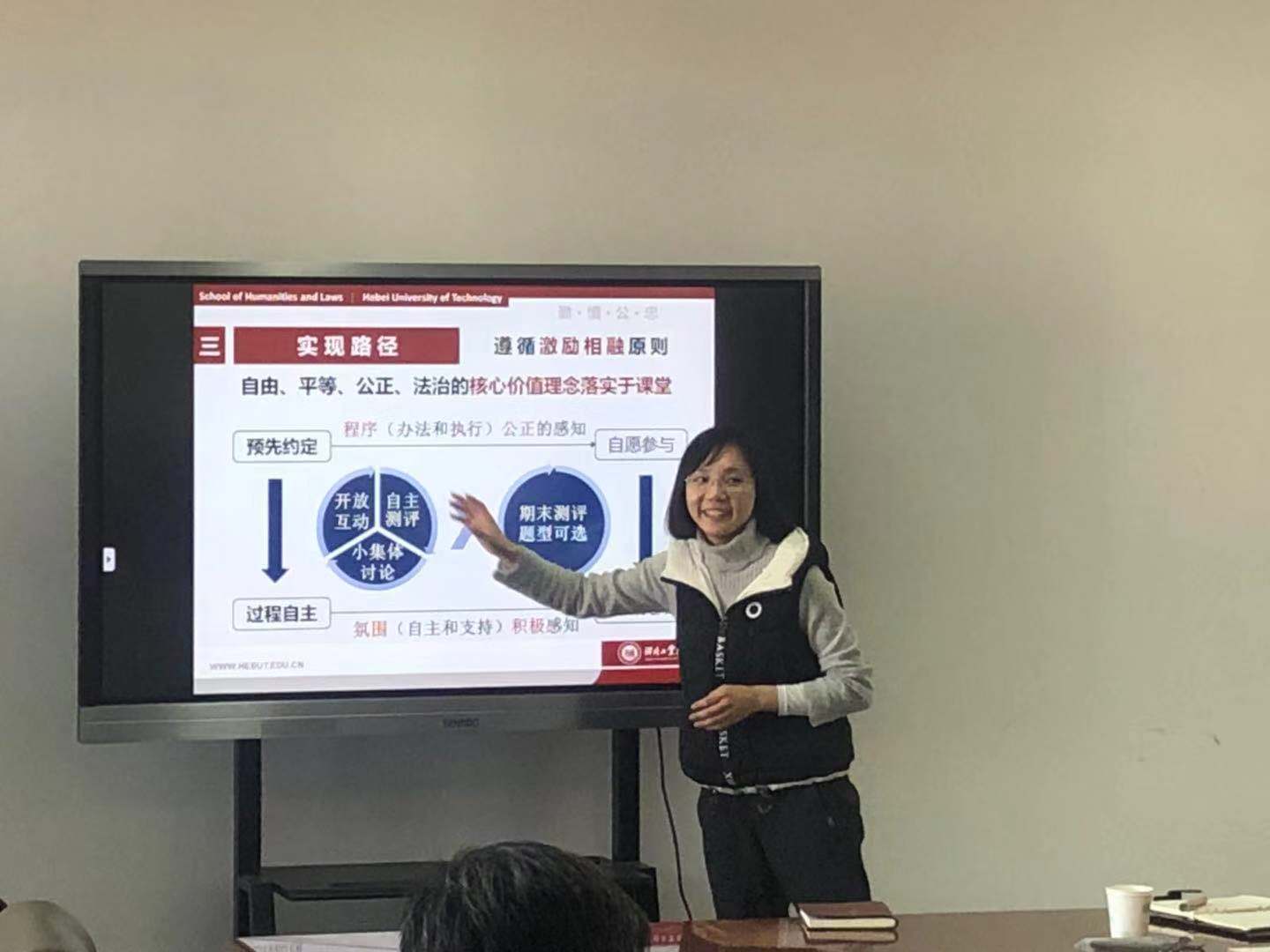 重点负责“课程思政”工作的马立民副院长,就必赢官网“课程思政”改革试点工作的具体开展情况做了进一步介绍。自去年暑期以来,学院教师积极响应校党委的号召踊跃申报立项,确定了包括通识课和专业课在内的30个“课程思政”教研项目;2018年11月15日学校“课程思政理论与实践研讨会”在必赢官网举行,决定对此30个项目作为校级教研立项进行资助;12月7日,课程思政专家上海大学的顾俊教授来校做报告,并到学院进行专门交流座谈。目前必赢官网课程思政建设已形成三个梯队:一是以孙伟龙老师的“大龙说字”和蒋冰晶老师的“法治中国”为代表的线上课程;二是陈晓春、刘新圣、孙伟龙、黄云生、蒋冰晶、闫文博等六位教师承担的示范项目;三是8门重点项目和16门特色项目。对进入梯队的所有项目采取“双自评价”原则,积极落实“进教材、进大纲、进教案、进课堂、进考试”的改革目标,计划在2019年7份组织集中验收,并在12月份结项。其间还将开展案例交流会,探讨挖掘课程思政元素的方法,并尝试进行项目成果转化。