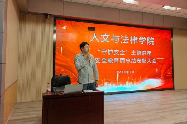 文法学院党委副书记李彦磊强调了校园安全的极端重要性,是保障教育正常运转的基础,教育引导同学们要遵守宿舍安全准则、防范电信诈骗、注意人身安全。